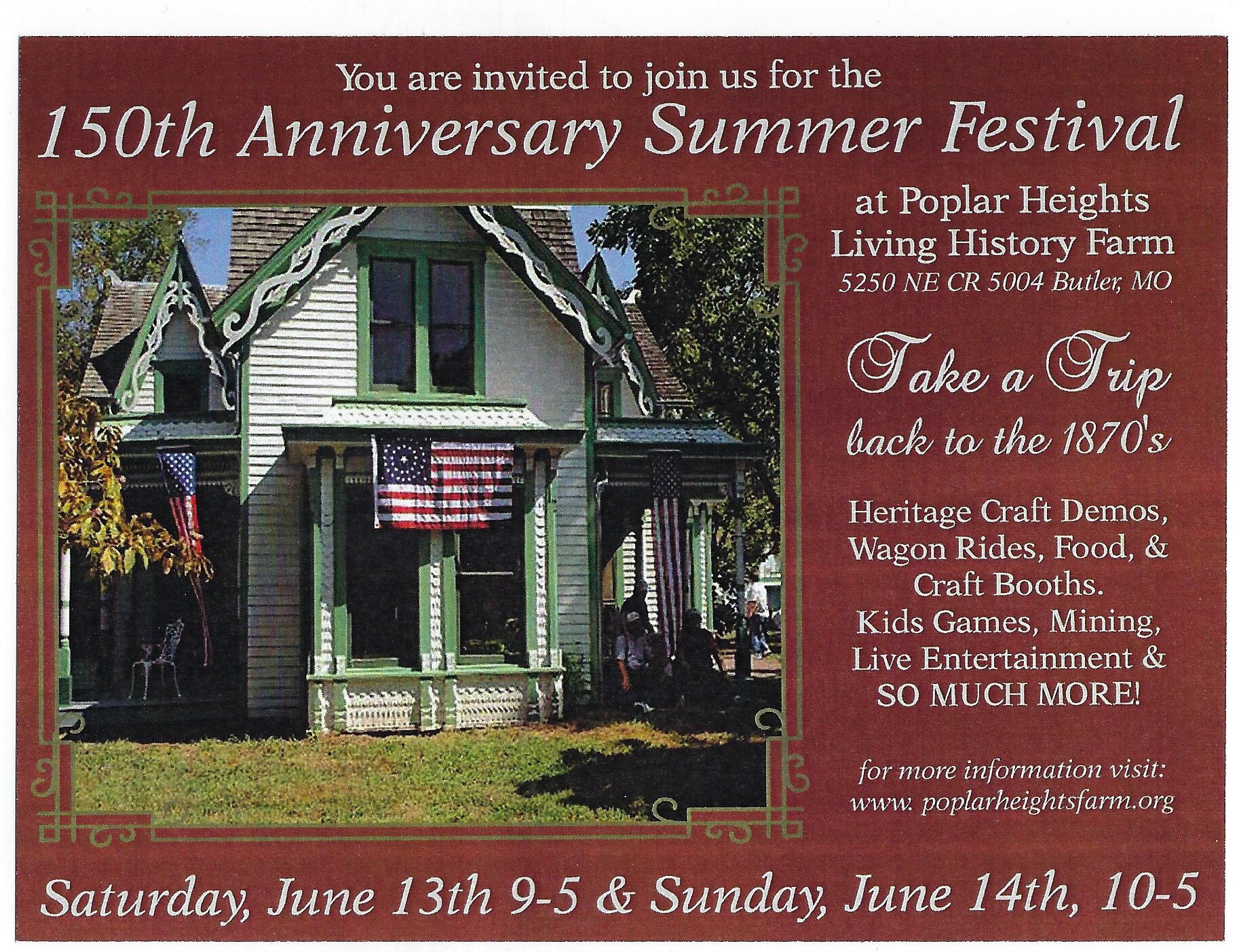A 12 year restoration program has been completed. The family house, barns and extensive landscaping have been restored to their 1890's look. The Grand Opening Celebration was held in 2010 and Poplar heights Farm is now open to the public with programs, displays, demonstrations, a computerized research library for the history of Bates County and the Main House is a museum of period antiques showcasing life in rural Missouri at the turn of the 20th century.